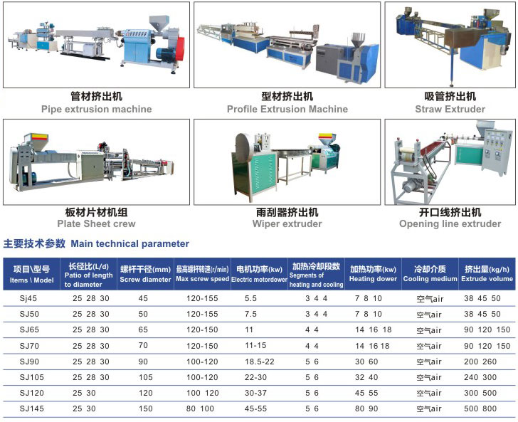 SJ系列單螺桿塑料擠出機(jī)配置各種結(jié)構(gòu)形式螺桿,可適用于加工PVC,PE,PPR,PEX等材料,具有轉(zhuǎn)速高,塑化均勻,產(chǎn)量高的特性,設(shè)有排氣,水冷裝置,無級調(diào)速和溫度自控等裝置,體積小,外形美觀,裝置不同的機(jī)頭和輔機(jī),適用于熱塑性塑料的薄膜,軟(硬)管材,棒材,板,異形材等制品的生產(chǎn)。