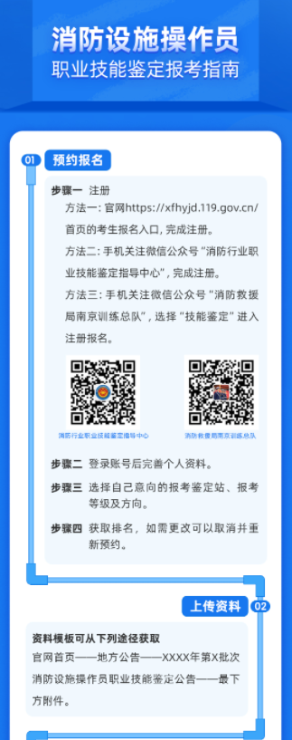 面向初次報名的考生全天候開放報名渠道。考生可通過“消防職業(yè)技能鑒定考試網(wǎng)”或“消防行業(yè)職業(yè)技能鑒定指導(dǎo)中心”、“南京訓(xùn)練總隊”微信公眾號進行預(yù)約報名。具備補考資格的考生請于每月15日至17日登陸“消防職業(yè)技能鑒定考試網(wǎng)”進行補考報名。
