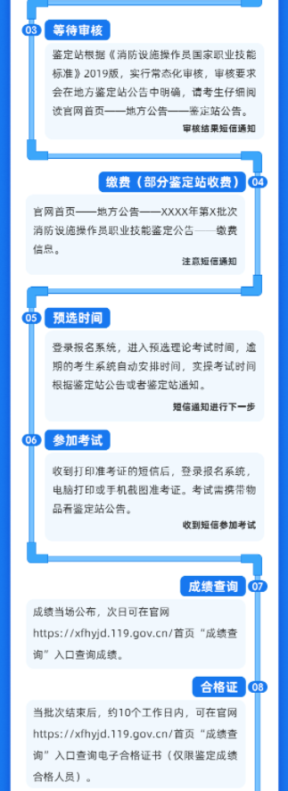考生須符合《消防設(shè)施操作員國家職業(yè)技能標(biāo)準(zhǔn)(2019年版)》申報條件,資料模板可在官網(wǎng)“通知公告”中點擊各鑒定站名稱查看。